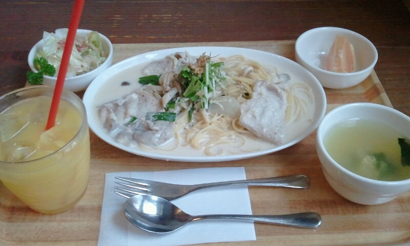 豚肉が入ってて、豆乳クリームパスタなんちゃらっていうメニューでしたw