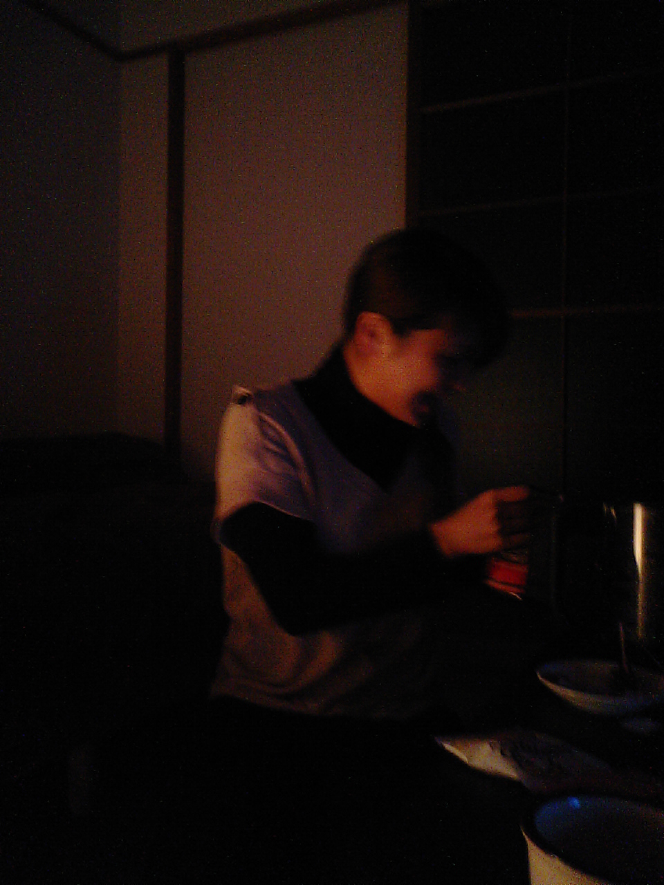 電気代節約とやらで、間接照明1個つけてるだけ。