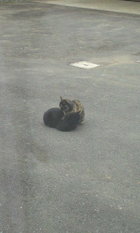 ちなみにこの黒い猫は孫(オス)で、上に乗ってる猫はおばあちゃん。